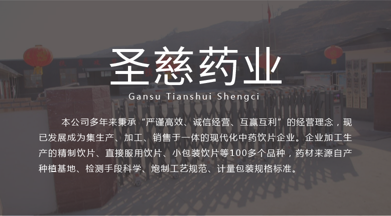 甘肅天水圣慈藥業(yè)有限公司成立于2016年11月8日,注冊資本500萬元,位于甘肅省天水市張川回族自治縣張川鎮(zhèn)中城南路,本公司多年秉承“嚴謹高效、誠信經(jīng)營、互贏互利”的經(jīng)營理念,現(xiàn)已發(fā)展成為集生產(chǎn)、加工、銷售于一體的現(xiàn)代化中藥飲片企業(yè)。企業(yè)加工生產(chǎn)的精制飲片、直接服用飲片、小包裝飲片等100多個品種,藥材來源自產(chǎn)種植基地、檢測手段科學(xué)、炮制工藝規(guī)范、計量包裝規(guī)格標準。